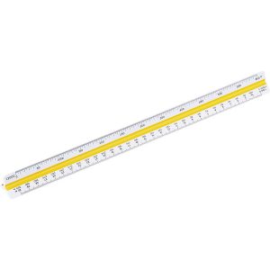 Triangular plastic rule featuring high grade print and 3 colour coded faces.
