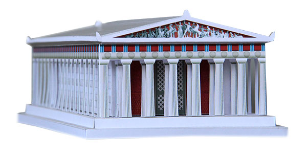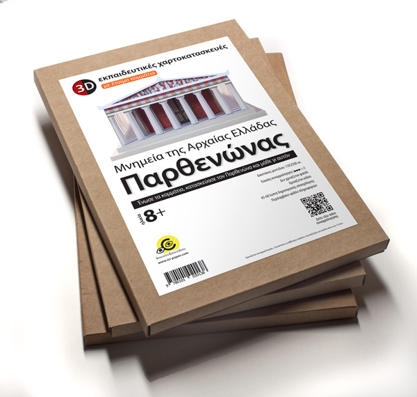 The Parthenon 3D paper model consists of 16 printed and easy detachable pieces of paper in five sheets of 215gr paper. The pack includes a sheet of historic and architectural information as well as instruction for the monument assembly.