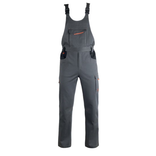 Ανθεκτικό παντελόνι εργασίας από ειδικό ελαστικό ύφασμα που προσφέρει μεγάλη άνεση κινήσεων. Έχει λειτουργικές λεπτομέρειες που εγγυώνται πρακτικότητα και άνεση. Η γραμμή του παντελονιού είναι regular. Ελαστικές τιράντες που διαμορφώνονται στο μήκος. Ελαστική μέση. Θήκη για μέτρο στη δεξιά τσέπη. Μεγάλη τσέπη στο στήθος με velcro (χριτς – χρατς). Μεγάλες πίσω τσέπες με velcro (χριτς – χρατς).